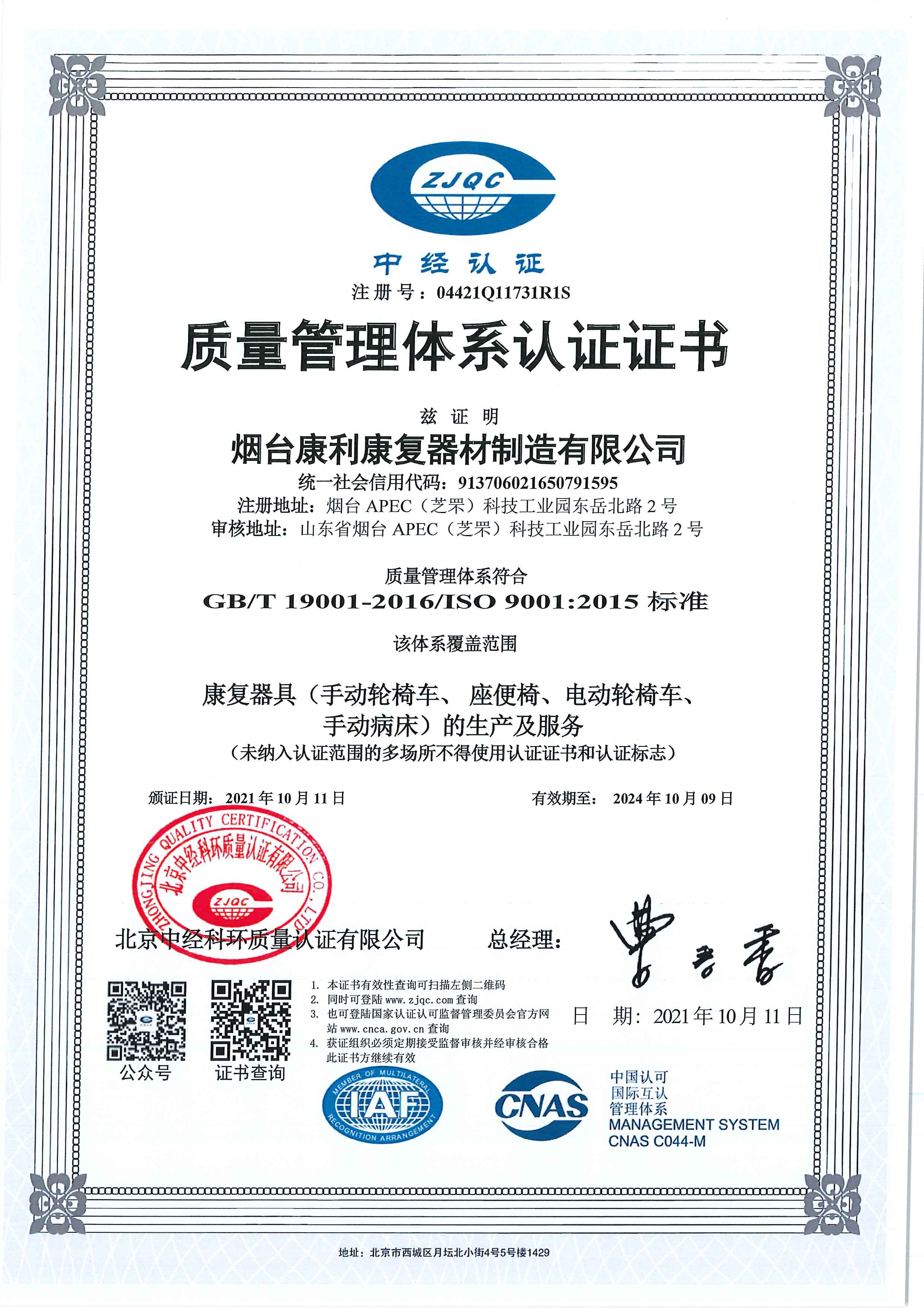 • 質量管理體系認證證書